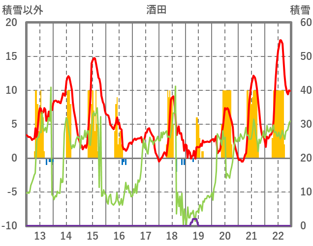 | 日 | 時 | 気温 | 降水 | 風向/風速 | 日照 | 積雪 | 降雪 |