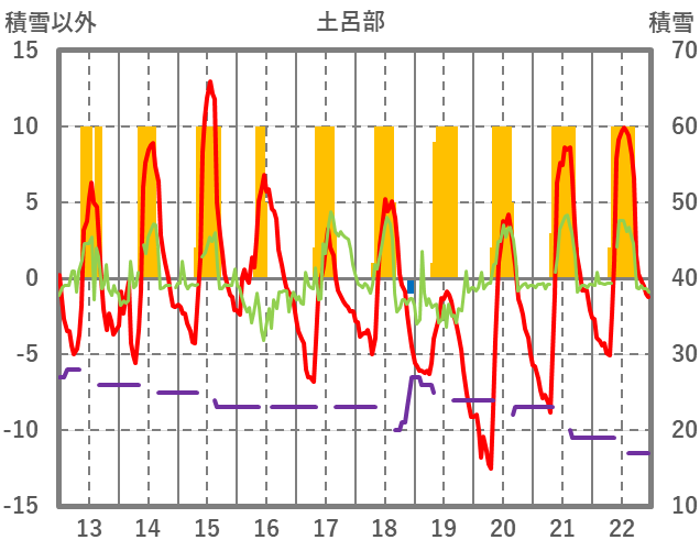| 日 | 時 | 気温 | 降水 | 風向/風速 | 日照 | 積雪 | 降雪 |