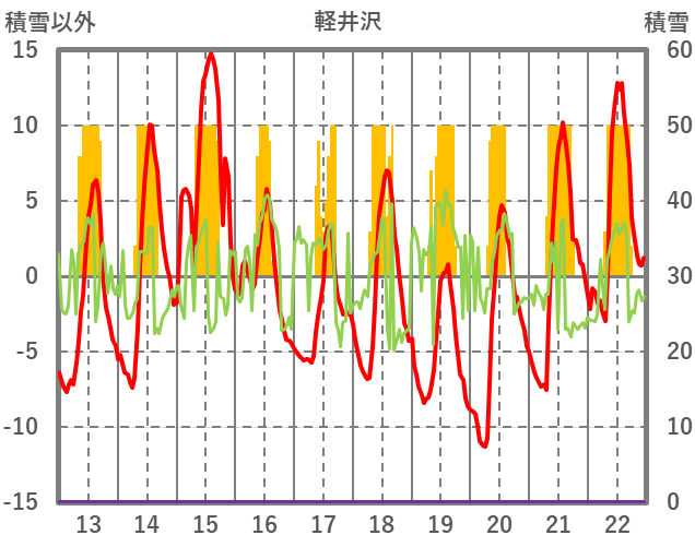 | 日 | 時 | 気温 | 降水 | 風向/風速 | 日照 | 積雪 | 降雪 |