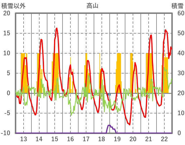 | 日 | 時 | 気温 | 降水 | 風向/風速 | 日照 | 積雪 | 降雪 |