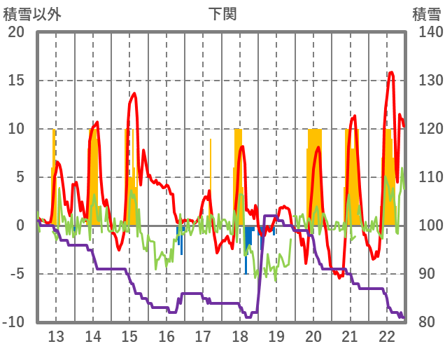 | 日 | 時 | 気温 | 降水 | 風向/風速 | 日照 | 積雪 | 降雪 |