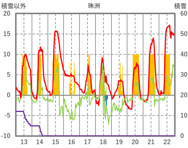 | 日 | 時 | 気温 | 降水 | 風向/風速 | 日照 | 積雪 | 降雪 |