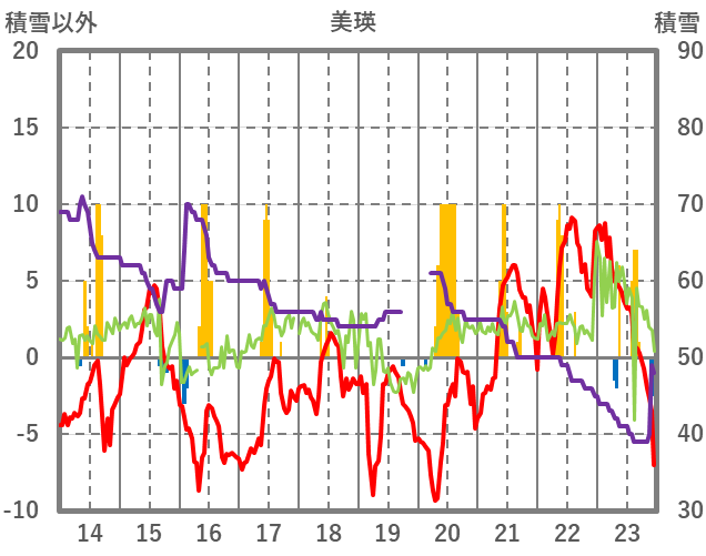 | 日 | 時 | 気温 | 降水 | 風向/風速 | 日照 | 積雪 | 降雪 |