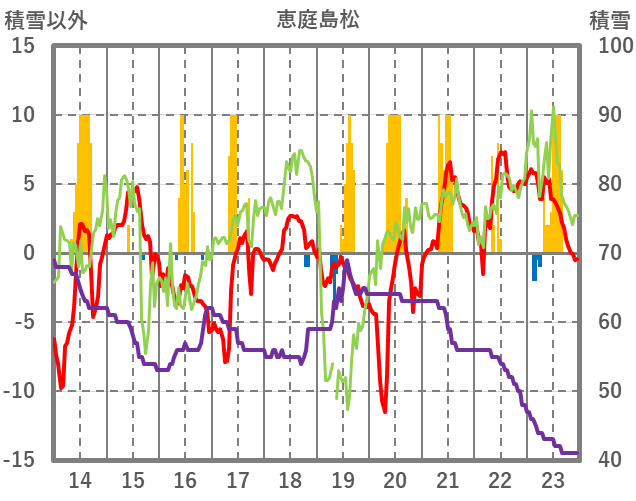 | 日 | 時 | 気温 | 降水 | 風向/風速 | 日照 | 積雪 | 降雪 |