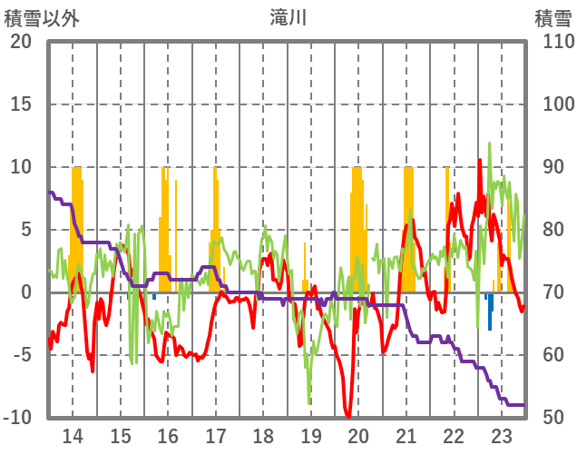 | 日 | 時 | 気温 | 降水 | 風向/風速 | 日照 | 積雪 | 降雪 |
