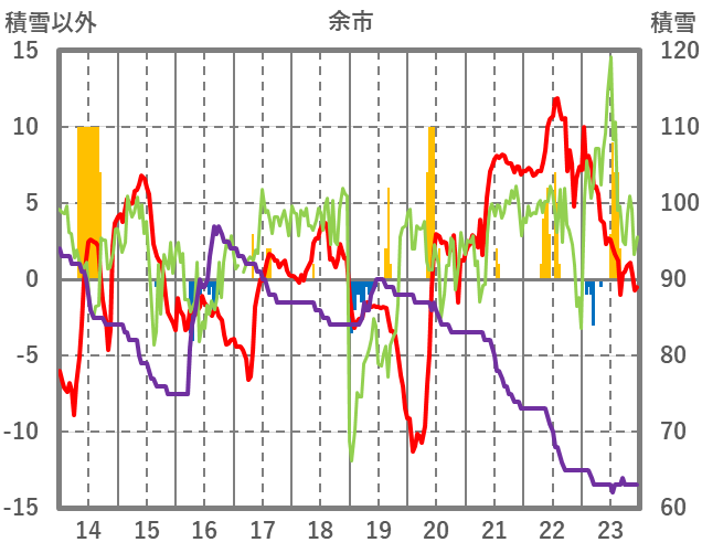 | 日 | 時 | 気温 | 降水 | 風向/風速 | 日照 | 積雪 | 降雪 |