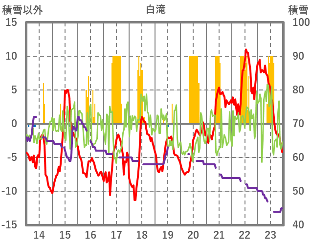 | 日 | 時 | 気温 | 降水 | 風向/風速 | 日照 | 積雪 | 降雪 |