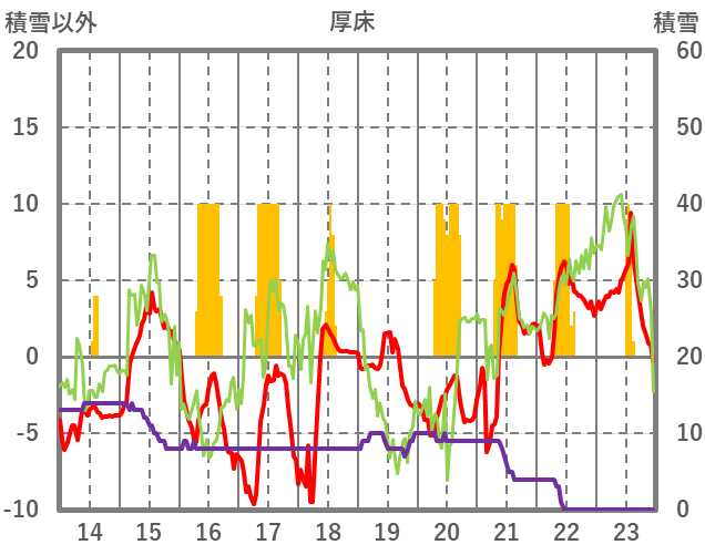 | 日 | 時 | 気温 | 降水 | 風向/風速 | 日照 | 積雪 | 降雪 |