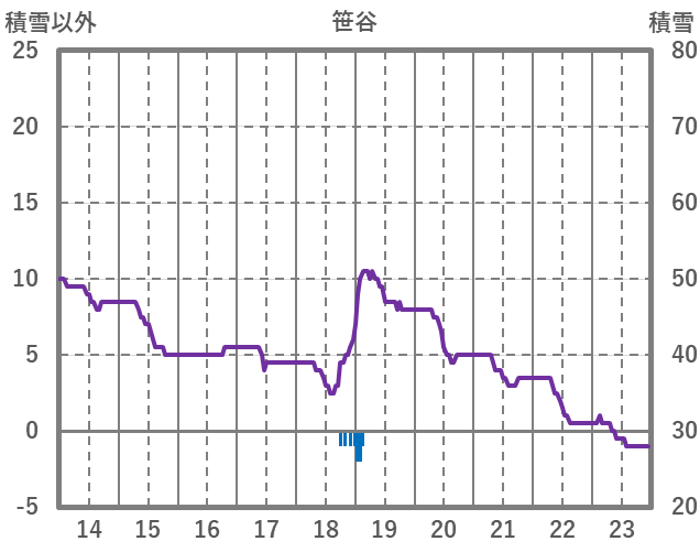 | 日 | 時 | 気温 | 降水 | 風向/風速 | 日照 | 積雪 | 降雪 |