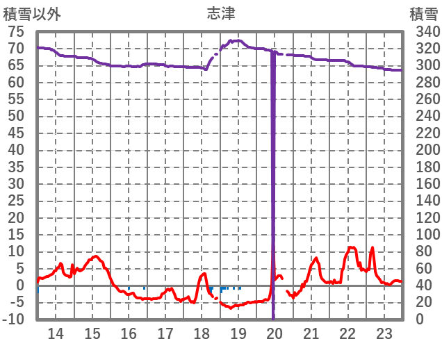 | 日 | 時 | 気温 | 降水 | 風向/風速 | 日照 | 積雪 | 降雪 |