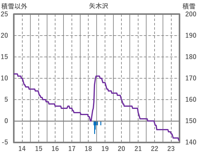 | 日 | 時 | 気温 | 降水 | 風向/風速 | 日照 | 積雪 | 降雪 |