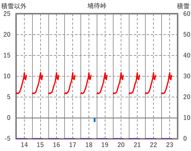 | 日 | 時 | 気温 | 降水 | 風向/風速 | 日照 | 積雪 | 降雪 |