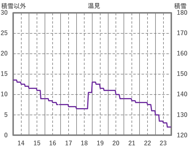 | 日 | 時 | 気温 | 降水 | 風向/風速 | 日照 | 積雪 | 降雪 |