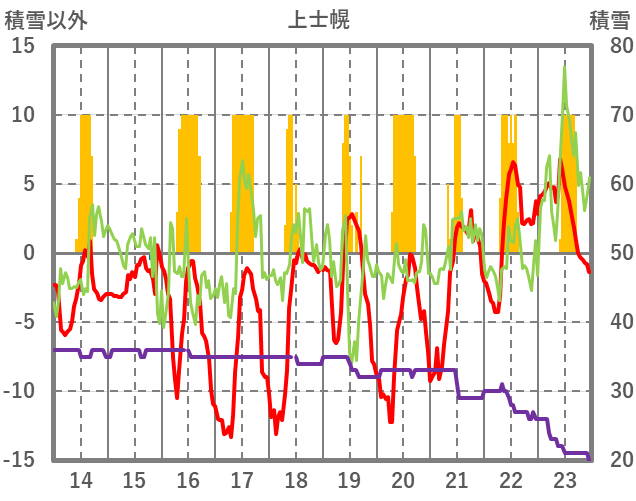| 日 | 時 | 気温 | 降水 | 風向/風速 | 日照 | 積雪 | 降雪 |