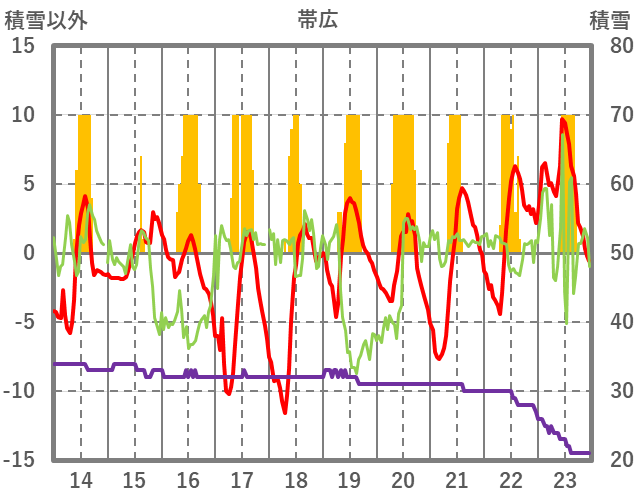 | 日 | 時 | 気温 | 降水 | 風向/風速 | 日照 | 積雪 | 降雪 |