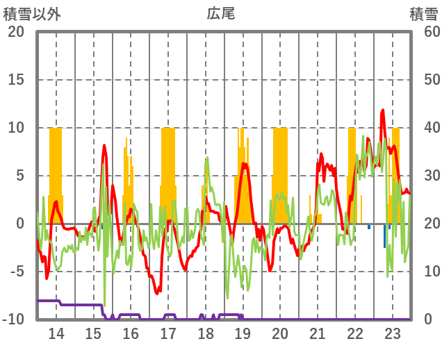 | 日 | 時 | 気温 | 降水 | 風向/風速 | 日照 | 積雪 | 降雪 |