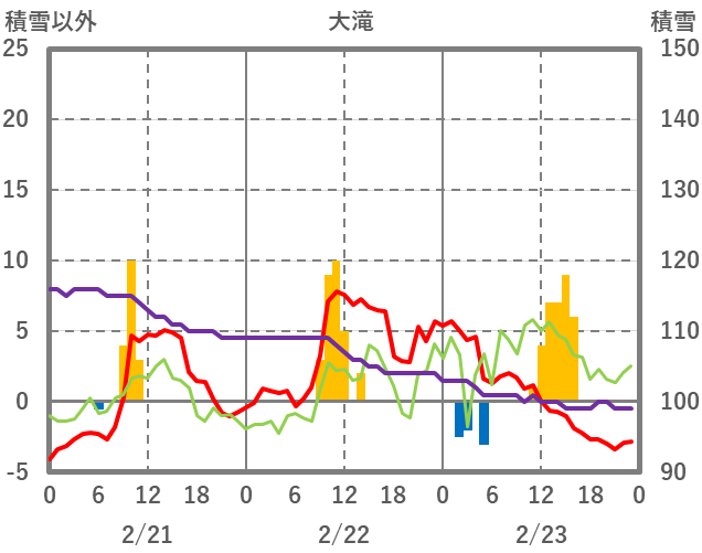 | 日 | 時 | 気温 | 降水 | 風向/風速 | 日照 | 積雪 | 降雪 |