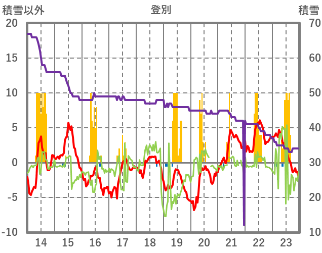 | 日 | 時 | 気温 | 降水 | 風向/風速 | 日照 | 積雪 | 降雪 |