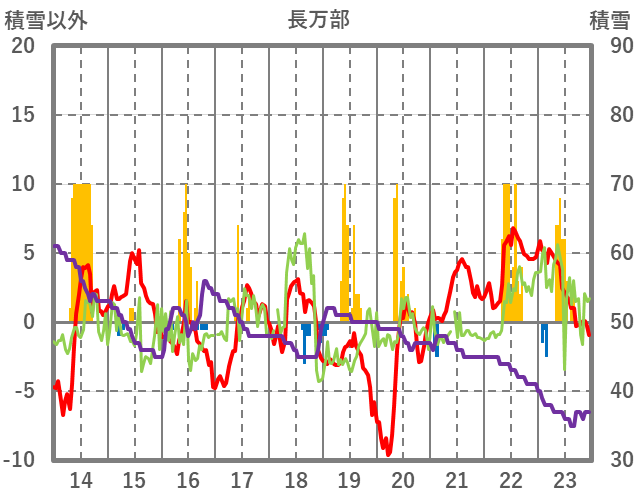 | 日 | 時 | 気温 | 降水 | 風向/風速 | 日照 | 積雪 | 降雪 |