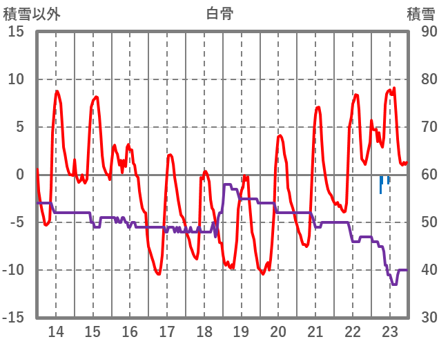 | 日 | 時 | 気温 | 降水 | 風向/風速 | 日照 | 積雪 | 降雪 |