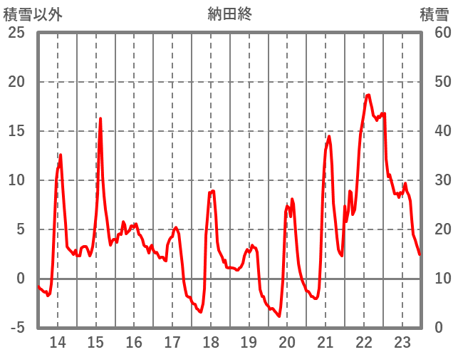 | 日 | 時 | 気温 | 降水 | 風向/風速 | 日照 | 積雪 | 降雪 |
