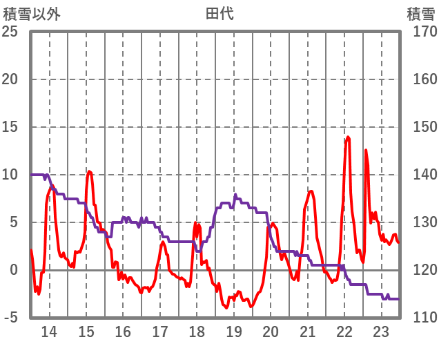 | 日 | 時 | 気温 | 降水 | 風向/風速 | 日照 | 積雪 | 降雪 |