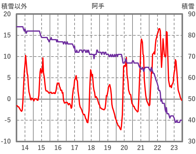 | 日 | 時 | 気温 | 降水 | 風向/風速 | 日照 | 積雪 | 降雪 |