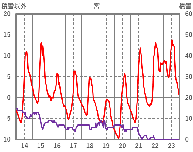 | 日 | 時 | 気温 | 降水 | 風向/風速 | 日照 | 積雪 | 降雪 |