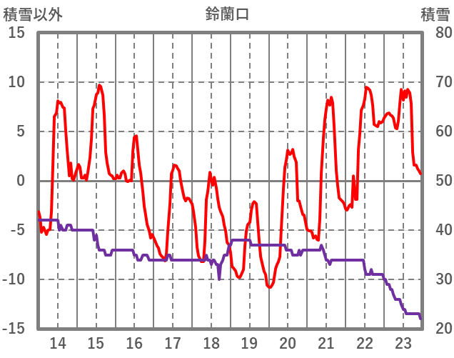 | 日 | 時 | 気温 | 降水 | 風向/風速 | 日照 | 積雪 | 降雪 |