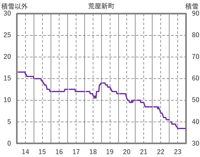 | 日 | 時 | 気温 | 降水 | 風向/風速 | 日照 | 積雪 | 降雪 |