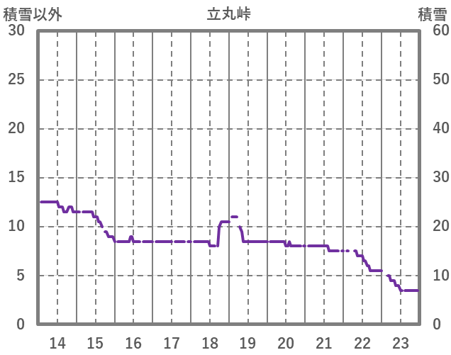 | 日 | 時 | 気温 | 降水 | 風向/風速 | 日照 | 積雪 | 降雪 |