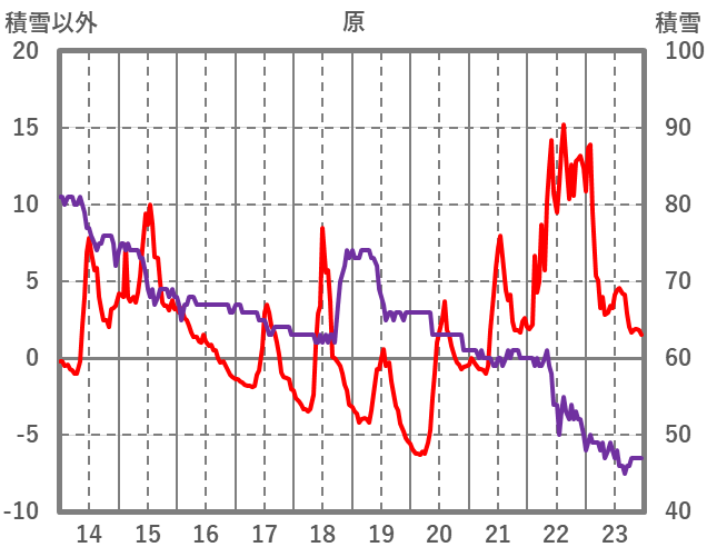 | 日 | 時 | 気温 | 降水 | 風向/風速 | 日照 | 積雪 | 降雪 |
