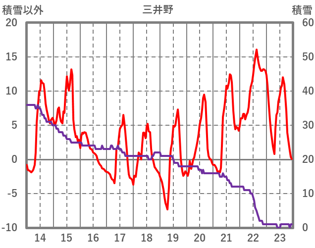 | 日 | 時 | 気温 | 降水 | 風向/風速 | 日照 | 積雪 | 降雪 |
