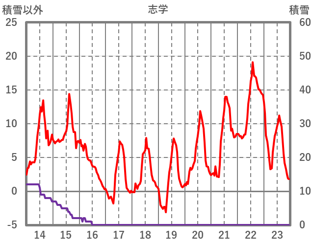 | 日 | 時 | 気温 | 降水 | 風向/風速 | 日照 | 積雪 | 降雪 |