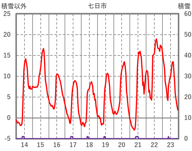 | 日 | 時 | 気温 | 降水 | 風向/風速 | 日照 | 積雪 | 降雪 |