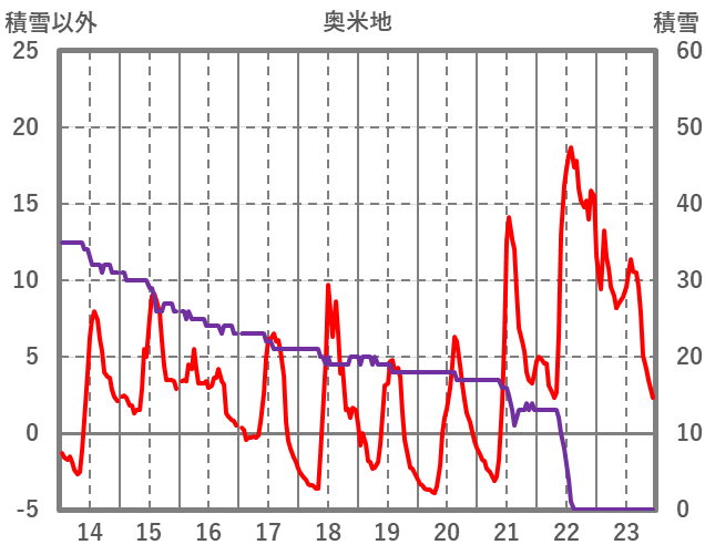 | 日 | 時 | 気温 | 降水 | 風向/風速 | 日照 | 積雪 | 降雪 |