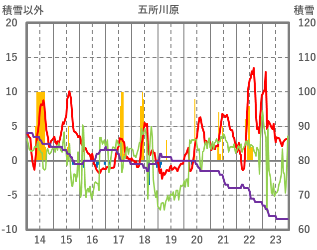| 日 | 時 | 気温 | 降水 | 風向/風速 | 日照 | 積雪 | 降雪 |