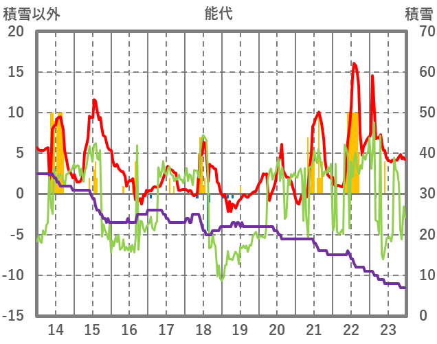 | 日 | 時 | 気温 | 降水 | 風向/風速 | 日照 | 積雪 | 降雪 |