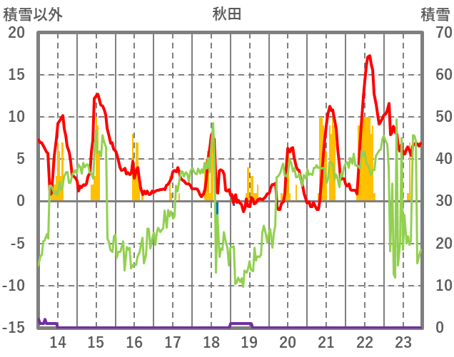 | 日 | 時 | 気温 | 降水 | 風向/風速 | 日照 | 積雪 | 降雪 |