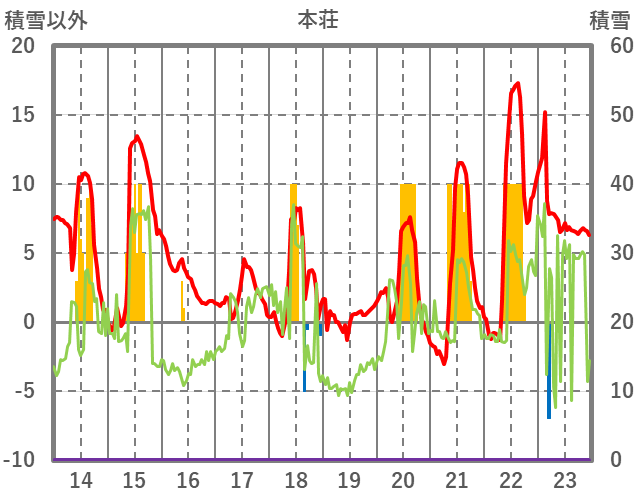 | 日 | 時 | 気温 | 降水 | 風向/風速 | 日照 | 積雪 | 降雪 |