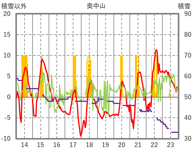 | 日 | 時 | 気温 | 降水 | 風向/風速 | 日照 | 積雪 | 降雪 |