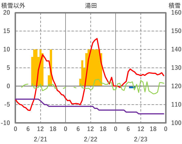 | 日 | 時 | 気温 | 降水 | 風向/風速 | 日照 | 積雪 | 降雪 |