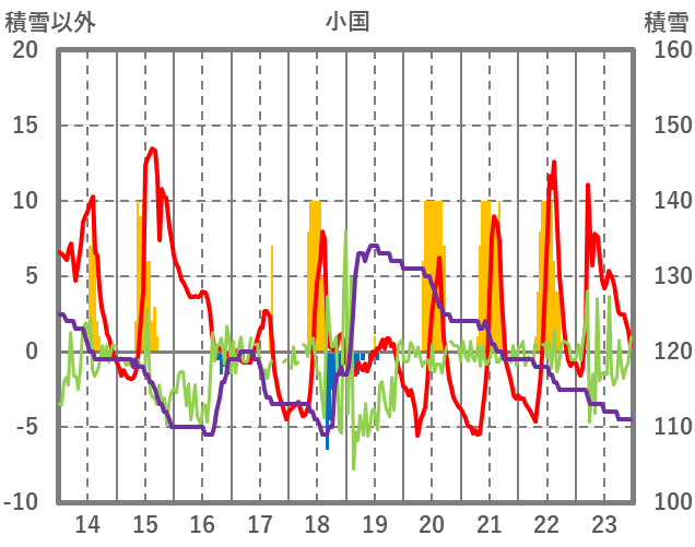 | 日 | 時 | 気温 | 降水 | 風向/風速 | 日照 | 積雪 | 降雪 |