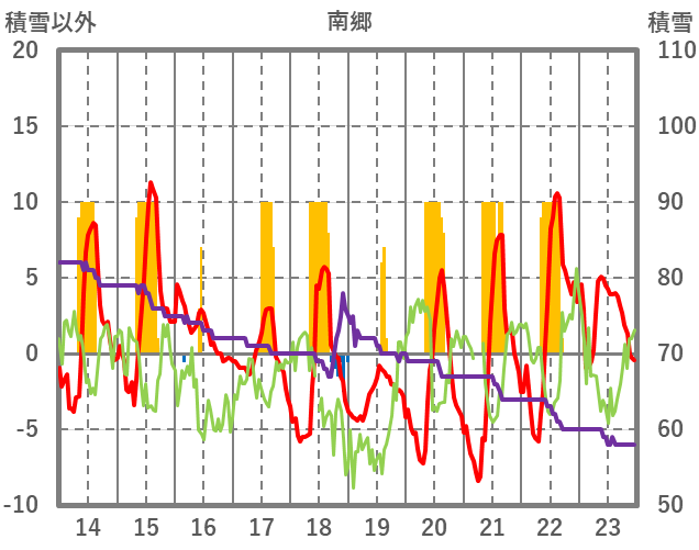| 日 | 時 | 気温 | 降水 | 風向/風速 | 日照 | 積雪 | 降雪 |