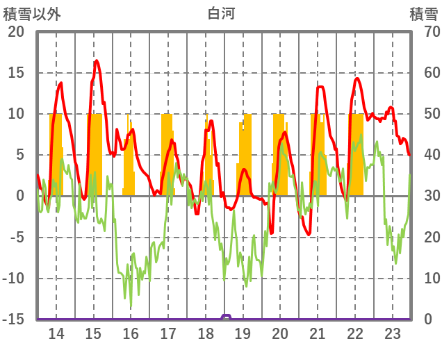 | 日 | 時 | 気温 | 降水 | 風向/風速 | 日照 | 積雪 | 降雪 |