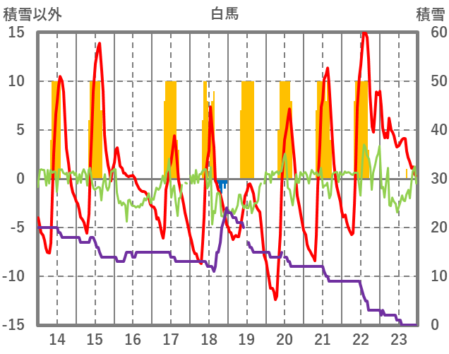 | 日 | 時 | 気温 | 降水 | 風向/風速 | 日照 | 積雪 | 降雪 |