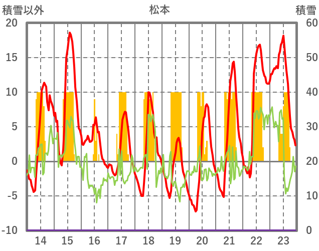 | 日 | 時 | 気温 | 降水 | 風向/風速 | 日照 | 積雪 | 降雪 |