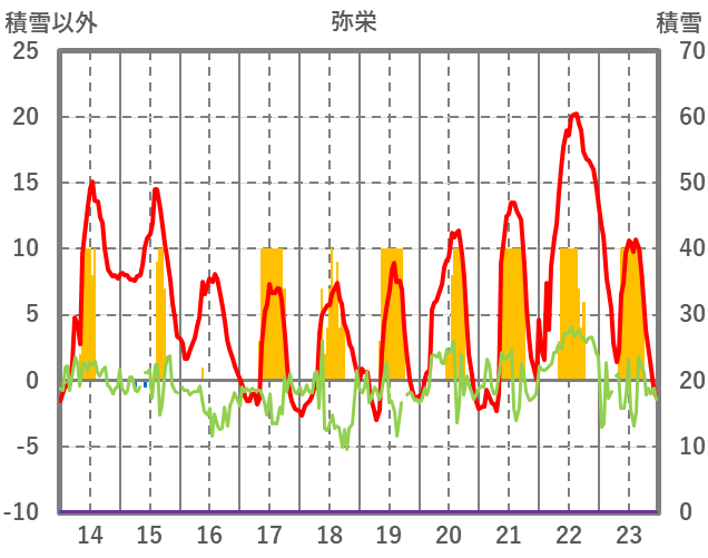 | 日 | 時 | 気温 | 降水 | 風向/風速 | 日照 | 積雪 | 降雪 |