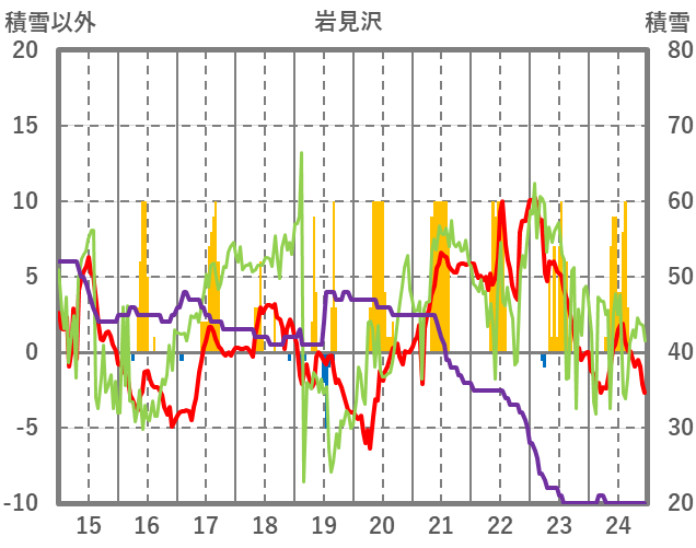 | 日 | 時 | 気温 | 降水 | 風向/風速 | 日照 | 積雪 | 降雪 |
