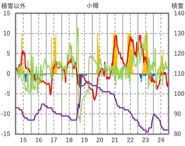 | 日 | 時 | 気温 | 降水 | 風向/風速 | 日照 | 積雪 | 降雪 |
